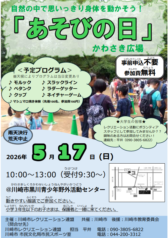 【黒川青少年野外活動センター】「あそびの日」かわさき広場【5/17】